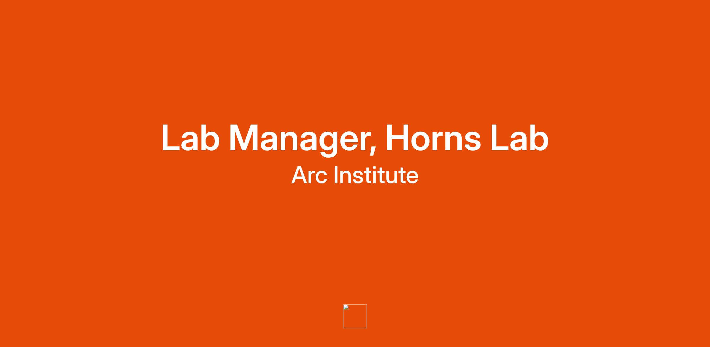 We are seeking a highly skilled and motivated Lab Manager to join the Horns Laboratory at the Arc Institute. In this position, you will be responsible for solving day-to-day logistical challenges associated with the operation of a scientific laboratory. Key roles of the Lab Manager include overseeing daily operations, managing resources, and ensuring that the lab functions safely and efficiently. The ideal candidate must have a strong background in life sciences laboratory research, and be exceptionally organized, responsible, and self-starting.