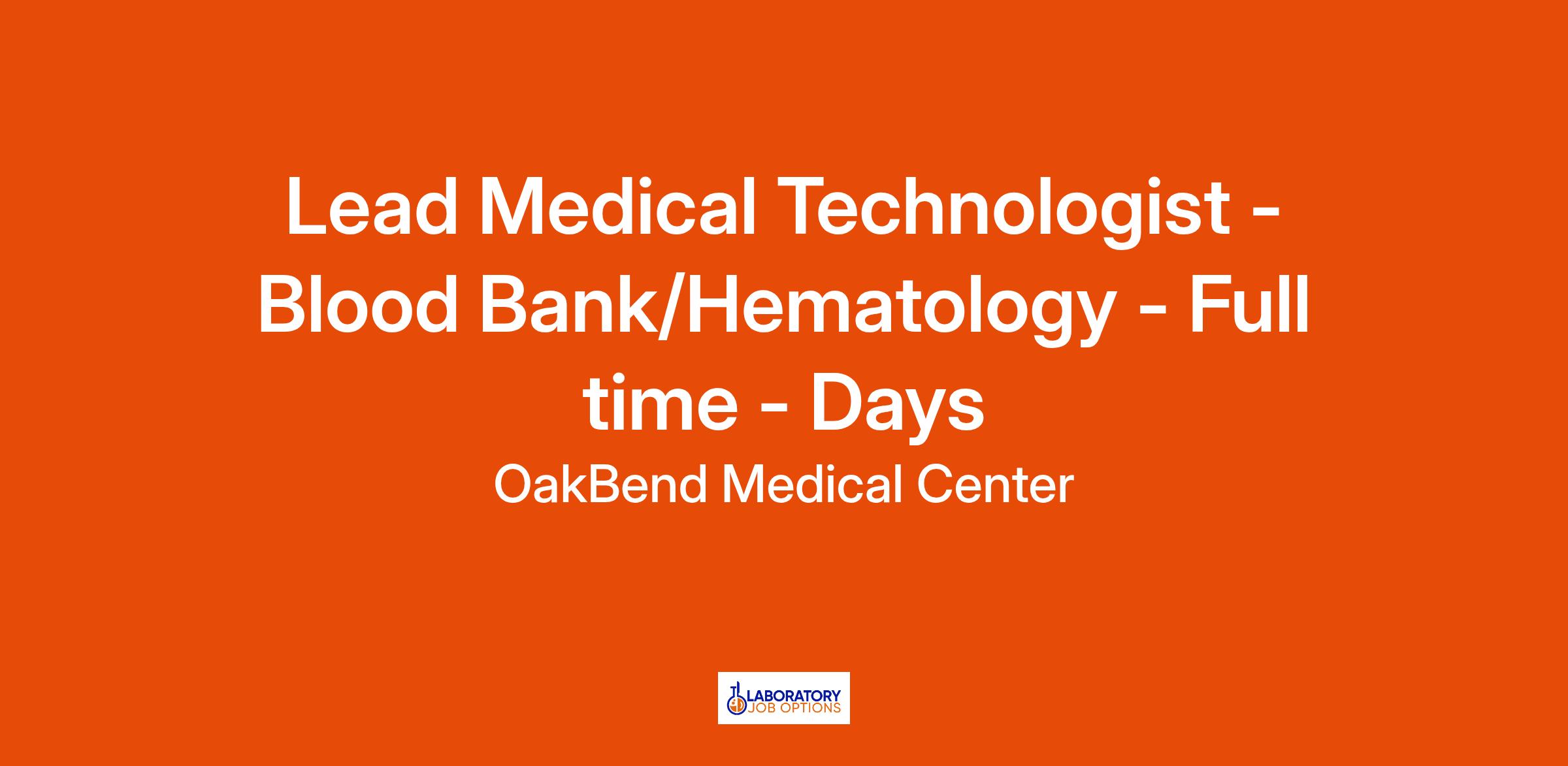 Under the direct supervision of the Laboratory Director and Manager, the Lead Medical Technologist (Blood Bank/Hematology) is responsible for providing supervision of other professional and non-professional staff in the Laboratory. The Lead Medical Technologist (Blood Bank/Hematology) ensures staff delivers excellent patient care, customer service, and efficient and accurate analysis of specimens processed in the clinical laboratory. In the absence of the Laboratory Director and/or Laboratory Manager, the Lead Medical Technologist (Blood Bank/Hematology) is responsible for providing direction to personnel of the clinical laboratory.