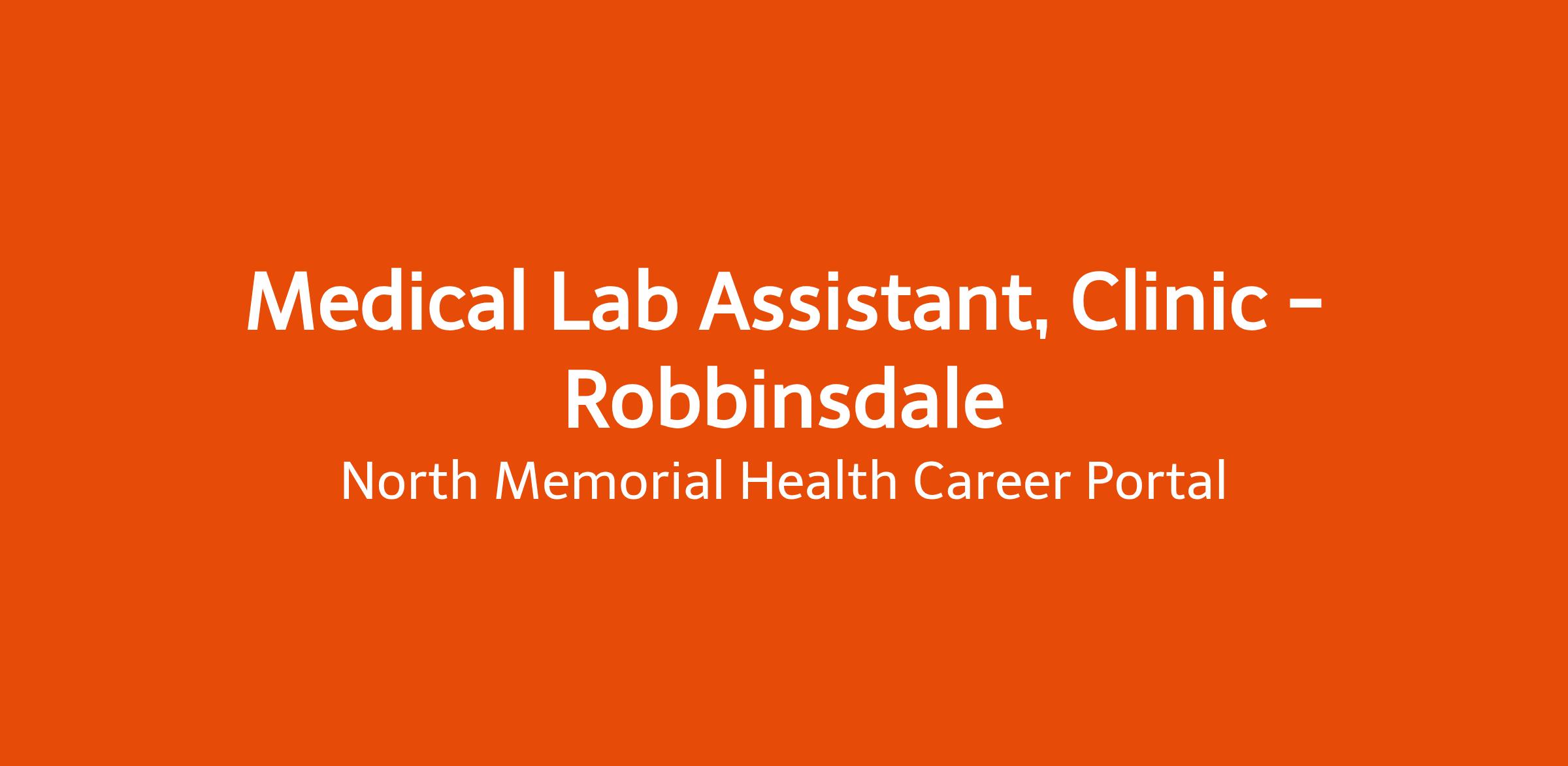 Commitment to Diversity, Equity & Inclusion At North Memorial Health we recognize that the strength of our team lies in our diversity and make every effort to embrace the unique contributions and experiences of each person on our team. We strive to ensure that everyone feels like they are a valuable part of our community, with initiatives that reinforce our belief in diversity, equity, and inclusivity, to promote a workforce that enables authenticity, as we want to be our best when providing effective services to our patients. We acknowledge and celebrate the unique traditions, backgrounds, languages, beliefs, and customs of our community, and want everyone to feel welcome. Through our DE&I initiatives we hope to dispel myths, assumptions, and acts of implicit bias. About this position The Medical Laboratory Assistant (MLA) is responsible for the collection and processing of customer specimens and the performance and evaluation of a range of clinical laboratory tests to assist in the diagnosis and monitoring of customer treatment. Customers may include infants, children, adolescents, adults and geriatrics.