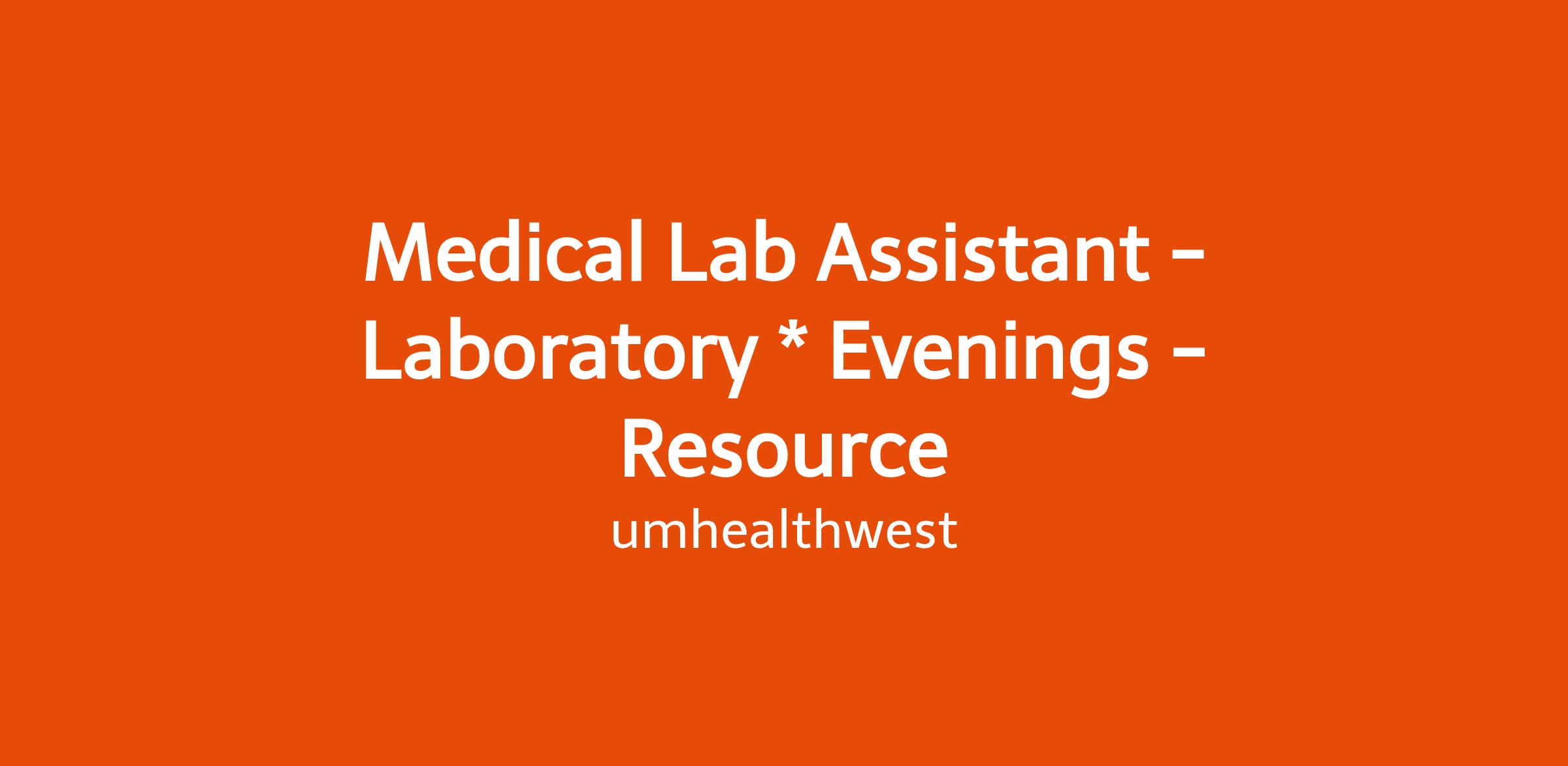Medical Lab Assistant - Laboratory * Evenings - Resource