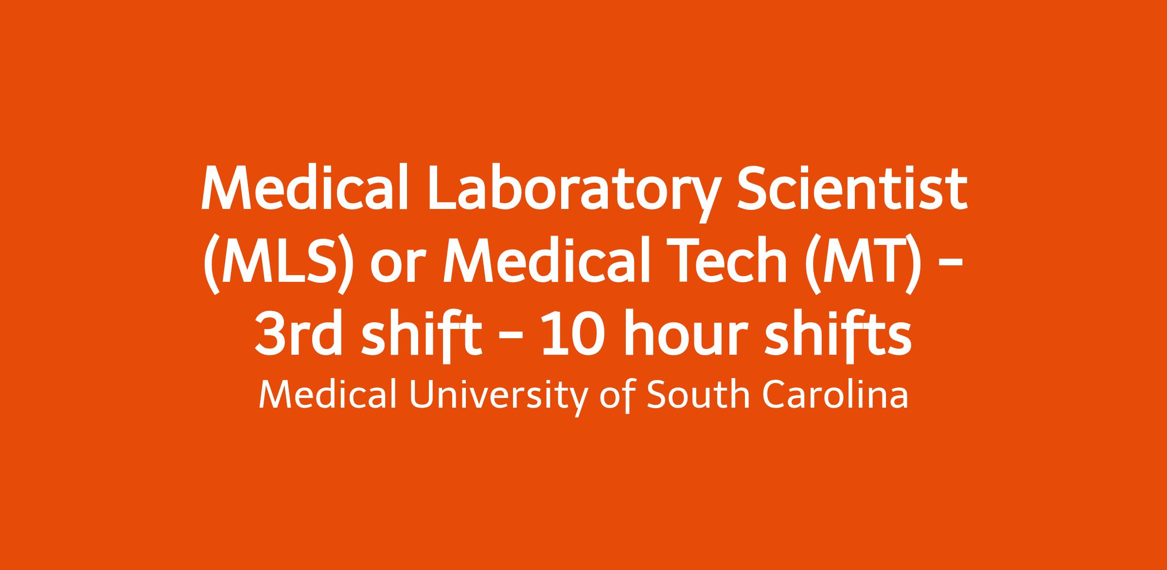 Join our MUSC Health Chester Medical Center team and play a vital role in delivering accurate, life-saving results that help physicians provide exceptional patient care. We’re looking for a detail-oriented Medical Lab Technologist / Medical Lab Scientist who thrives in a collaborative environment and is passionate about quality laboratory medicine.