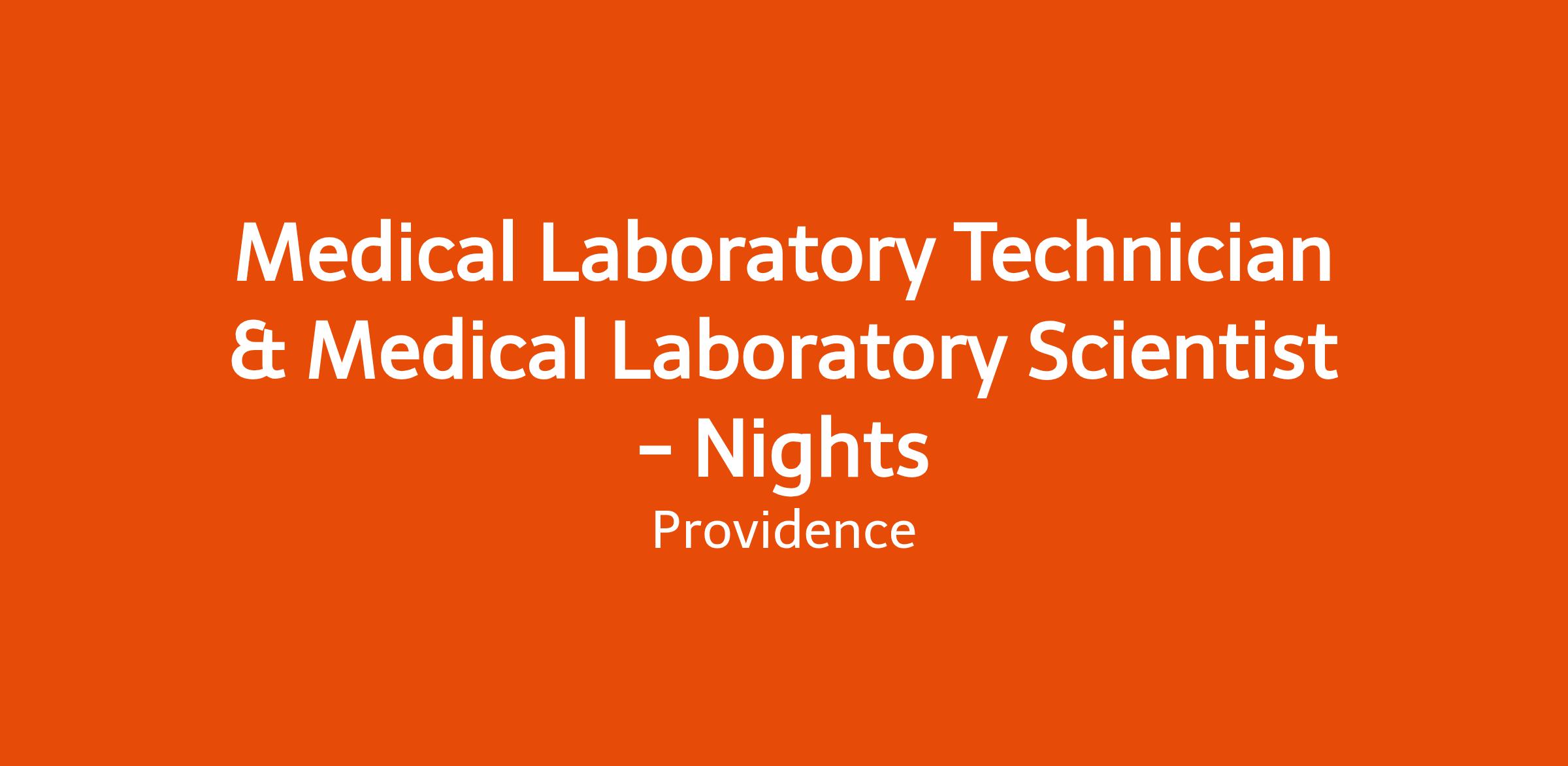 This is a combined posting for Medical Laboratory Technician and Medical Laboratory Scientist. The requirements of each role are listed below under each associated title. Consideration for each role will be based on qualifications. If you have the qualifications of any one of these two positions, we encourage you to apply.