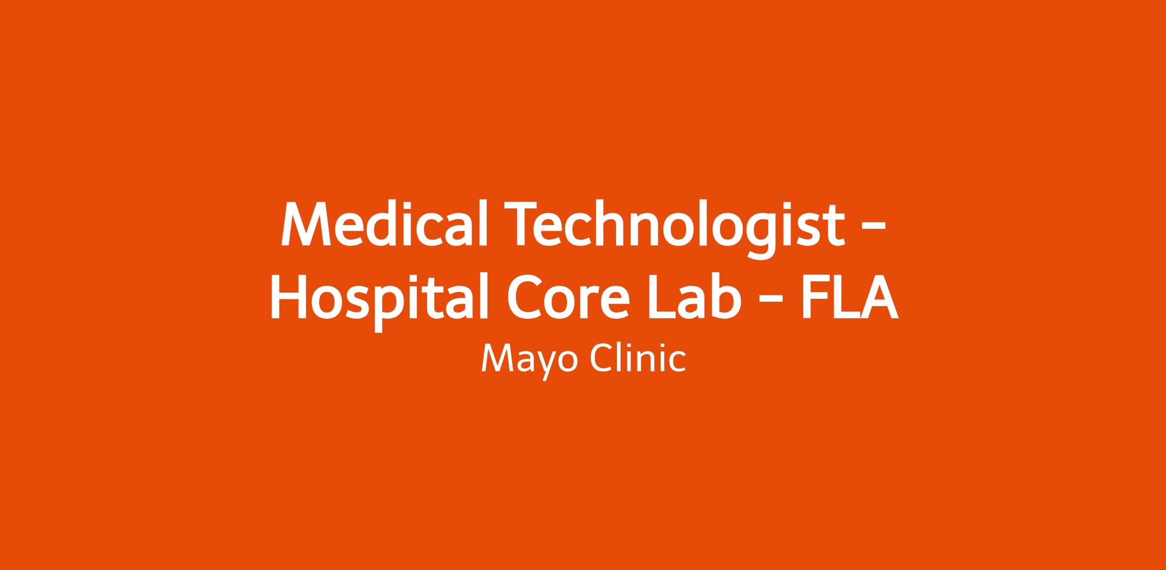 Medical Technologist - Hospital Core Lab - FLA