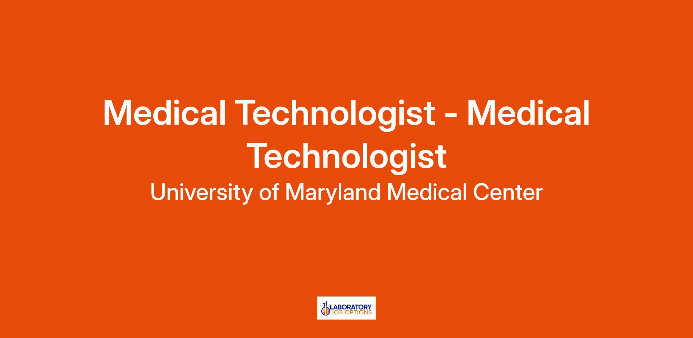 Job Title: Medical Technologist: Medical Technologist