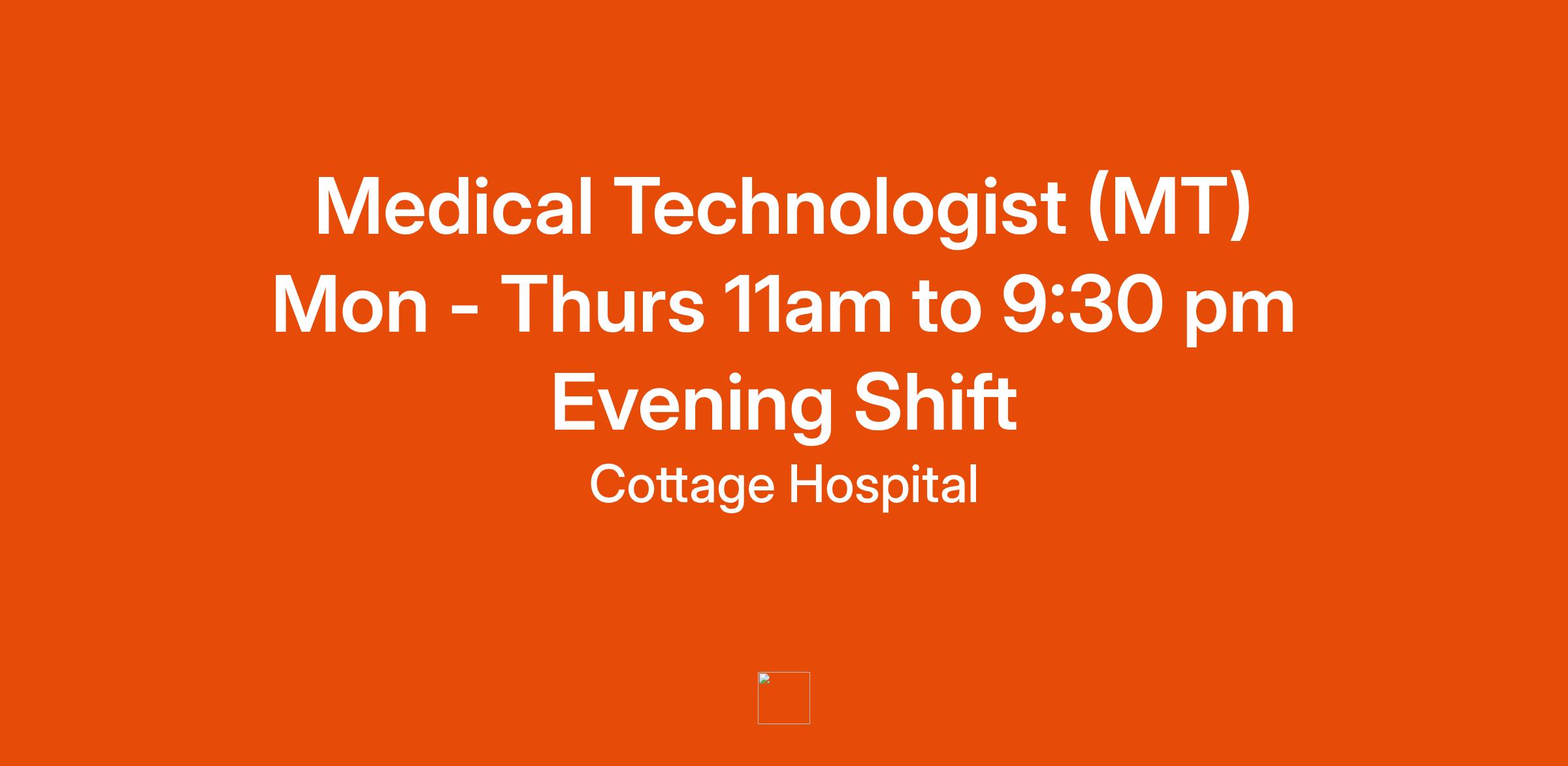 Are you ready to make a difference in healthcare? Cottage Hospital is seeking skilled and detail-oriented Medical Technologists (MT) to join our dynamic laboratory team. If you are passionate about patient care, thrive in a fast-paced environment, and are committed to delivering accurate results, we want you!