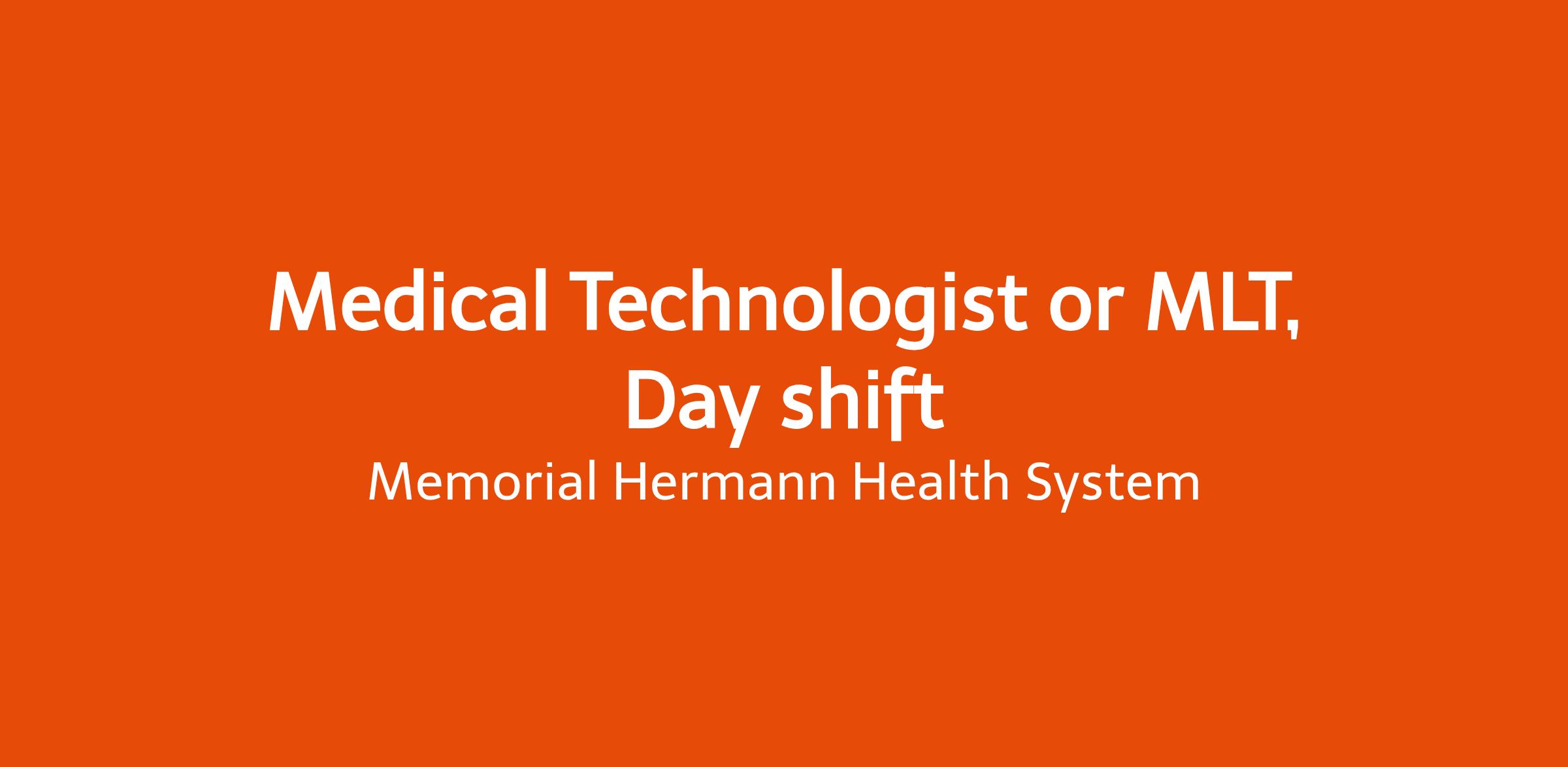 Memorial Hermann TMC seeks a Medical Technologist or MLT to join our team on day shift.Minimum Qualifications: