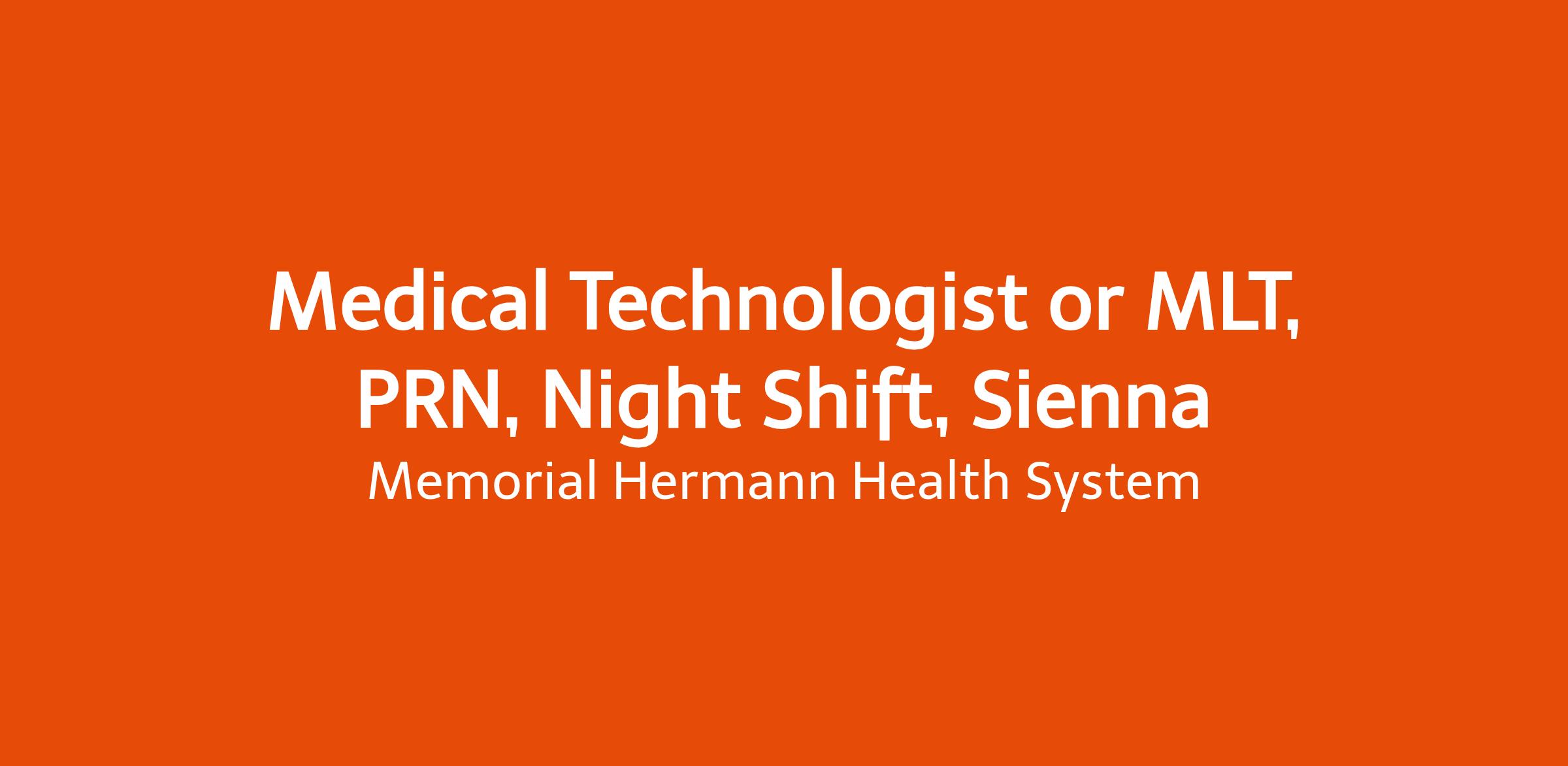 Memorial Hermann's Sienna CCC seeks a Medical Technologist or MLT to provide support to our team at least one day a week.Minimum Qualifications: