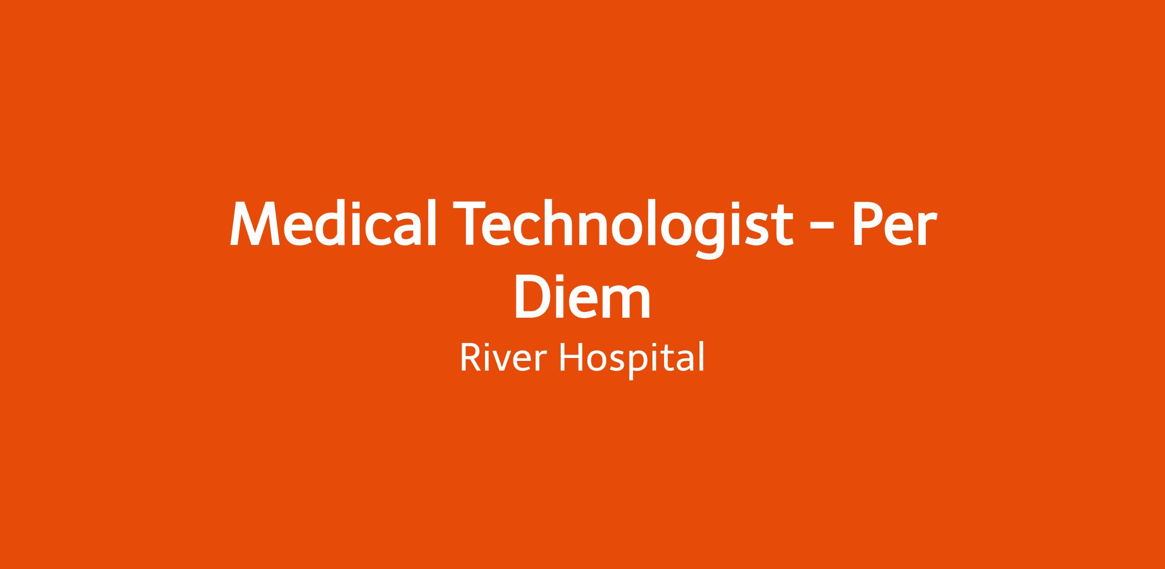 River Hospital is seeking a Medical Technologist to work per diem in our Laboratory Department.