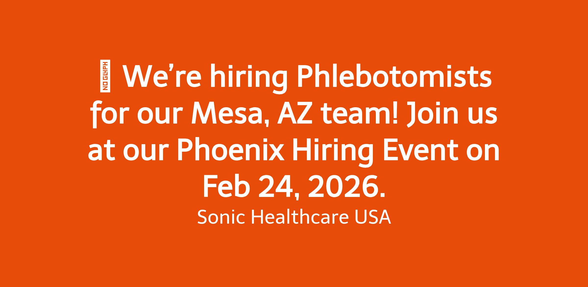 We’re excited to host a Hiring Event at our Phoenix location! We are actively recruiting for our local Patient Service Centers in the following areas: